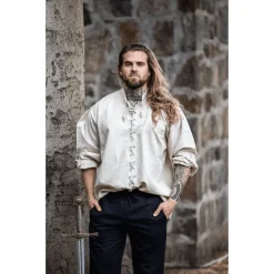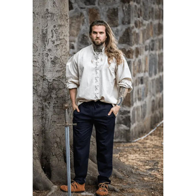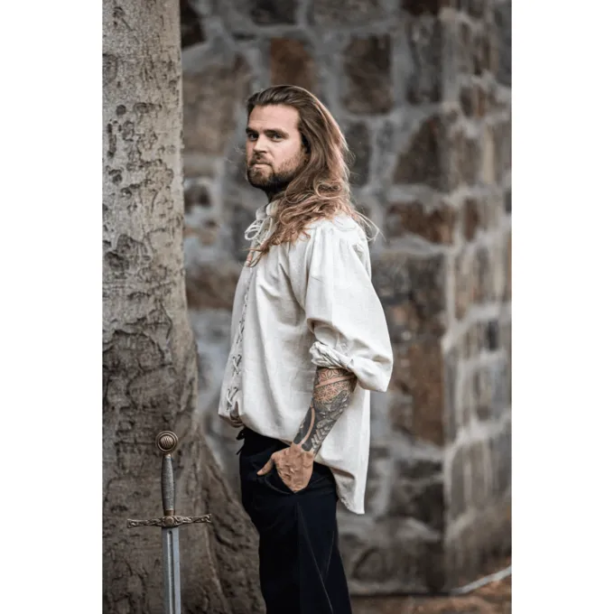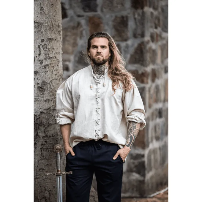 Universal middelalderlig skjorte egnet til utallige tøj. Dette store stykke kan let bæres under periode bukser. Det kan bæres for både middelalderlige og tidlige moderne kostumer. Denne skjorte er også meget velegnet til at bruge som en undertrøje til for eksempel LandsKnecht eller Tudor Outfits.