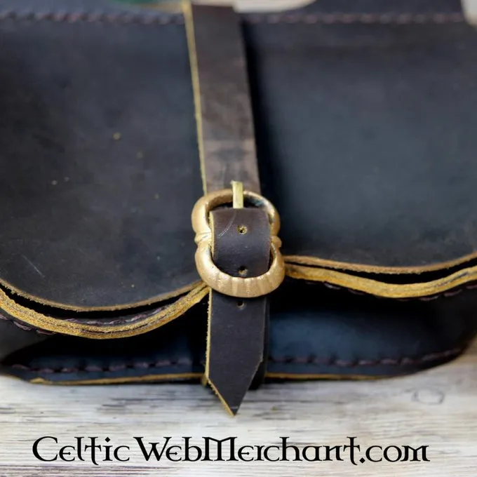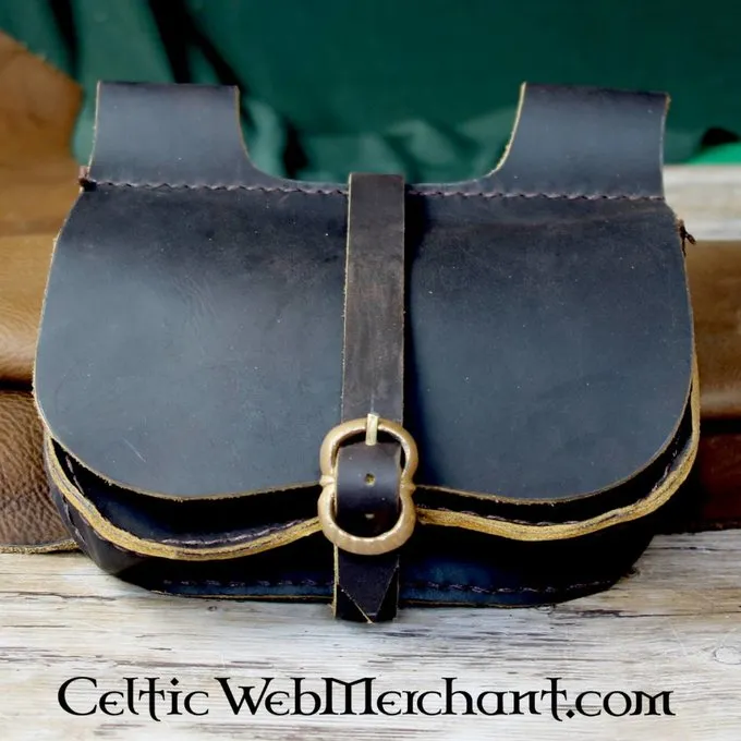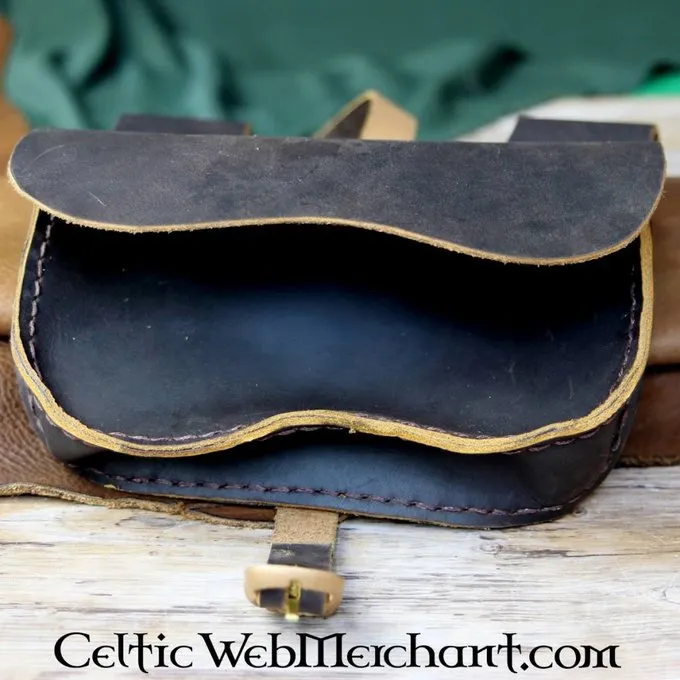 Denne model af nyre pose er typisk for det 15. århundrede. Den er lavet af ægte nubuck-læder og har en messing spænde til lukning. På toppen har to bæltestropper som er egnede til bælter op til 4 cm bred.