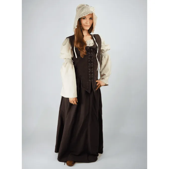 Dette korset er lavet efter flere originaler afbildet i renæssancemalerier. Dette korset er meget velegnet til at bære over en bluse og nederdel på en middelalderlig festival. Dette korset har snørebånd foran, som det kan justeres til din pasform.