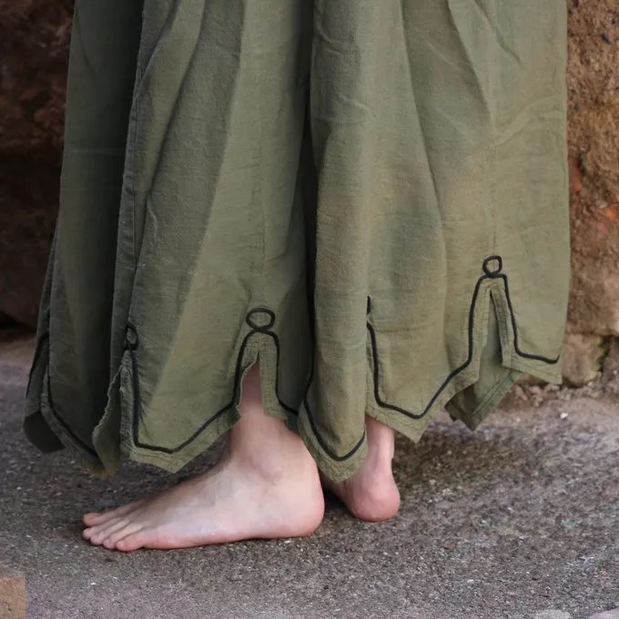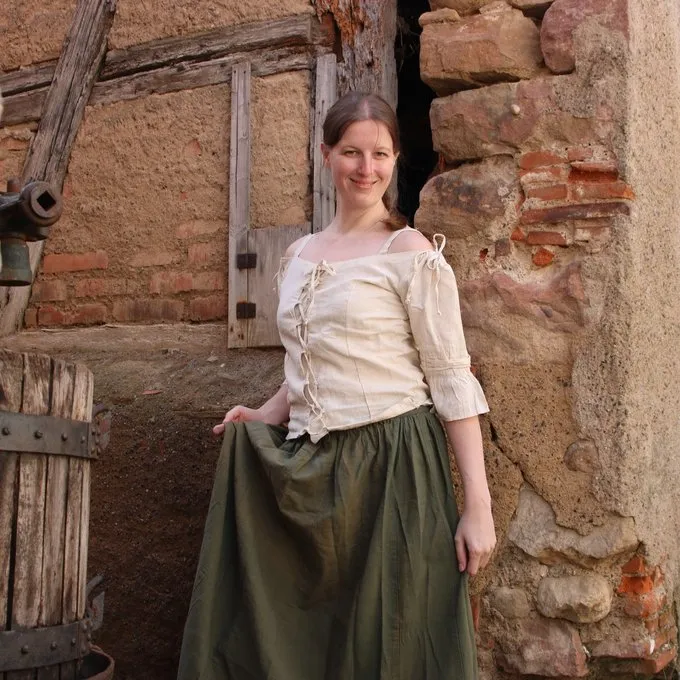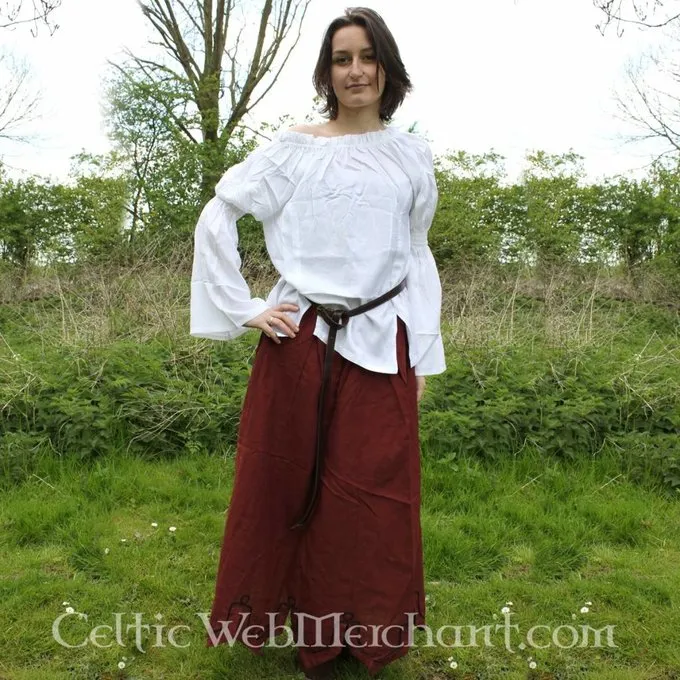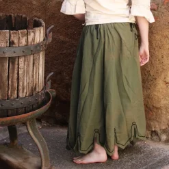 Denne nederdel er lavet af et ubleget bomuldslinned. Den nederste kant har karteller, så den har et typisk renæssanceudseende. Den fås i farverne hvid, grøn, brun, rød og blå i størrelserne SM, L-XL og XXL.