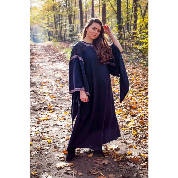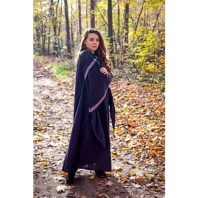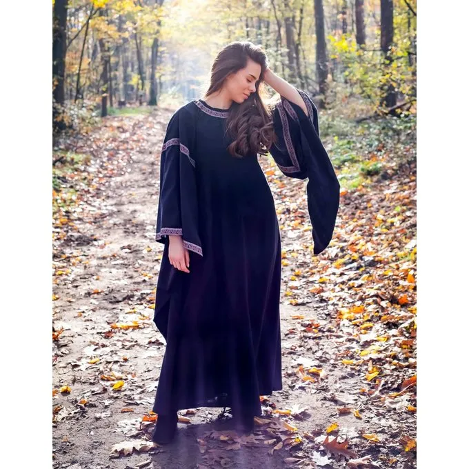 Denne luksuriøse renæssancekjole har brede trompetærmer. Oprindeligt var dette et tegn på rigdom. Denne elegante kjole kan bæres godt med en glidekjole, læderbælte og andet historisk tilbehør.