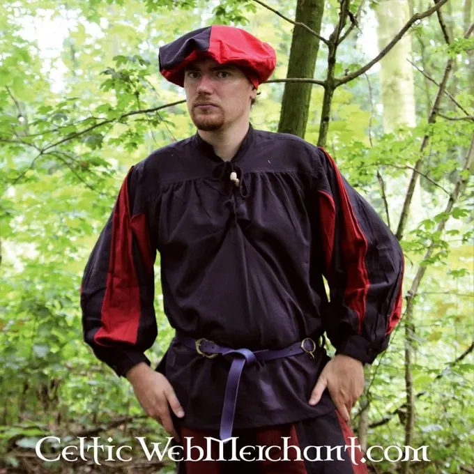 Caps som denne blev båret under senmiddelalderen. Eksempler er afbildet i forskellige middelalderhåndskrifter. I middelalder teknik, Mi-parti beklædningsgenstande havde negative associationer og Bødlerne Kristi, for eksempel blev afbildet med sådanne beklædningsgenstande.