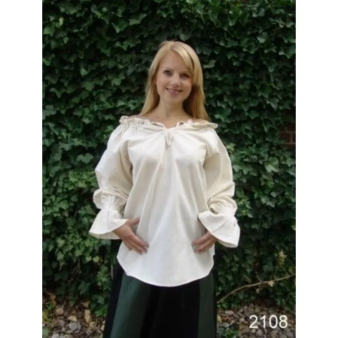 Denne top har lange ærmer. Omkring håndled og hals er elastikker. Halsen kan lukkes med to ledninger. Den fås i farverne hvid (creme) og sort i størrelserne S til XXXL.