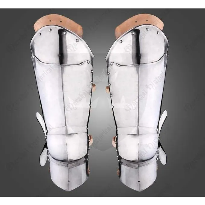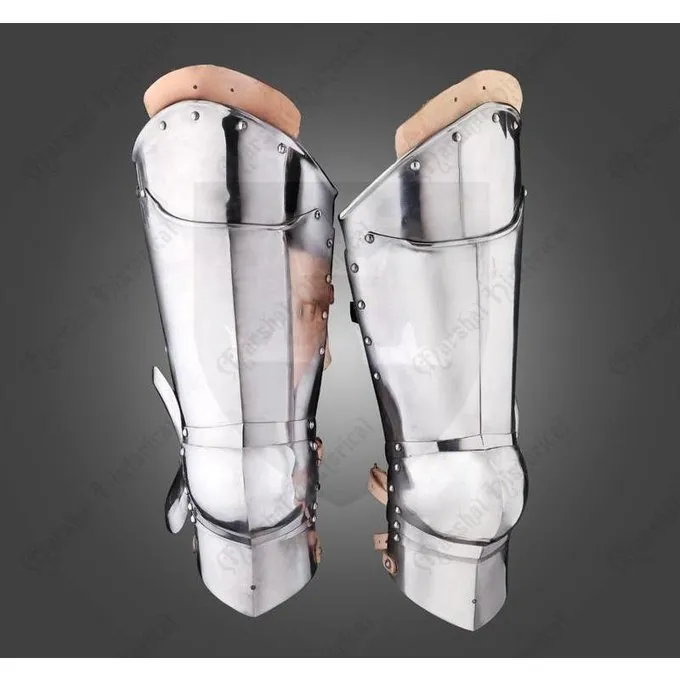 Denne øvre ben rustning er lavet efter Avant rustning. Leg rustning som dette blev båret hele Europa mellem ca.. 1440 og 1500. Den øvre ben og knæ er optimalt beskyttet af denne rustning. Knæet betjente er forsynet med roundels til beskyttelse af knæhasen. Den rustning har også en læder Kant, så den nemt kan attachted til et bælte, for at bære dem som separate rustning dele.