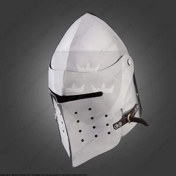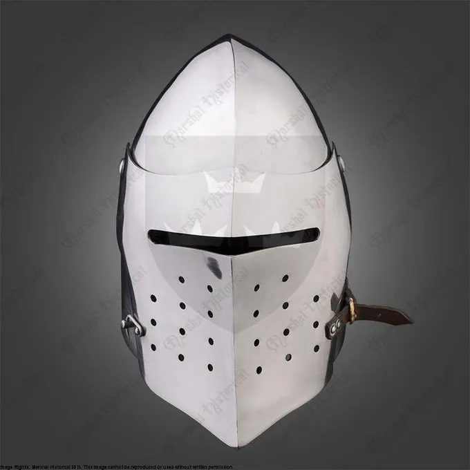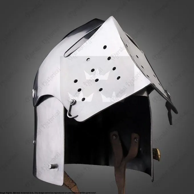 Denne bascinet er baseret på hjelmene, der blev båret af det 14. og 15. århundrede mænd-at-våben. Denne tunge infanteri var bevæbnet til frontal kollision. Denne hjelm er lavet af 2,5 mm tykke, temperbehandlet kulstofstål. Denne hjelm har ingen articles, for at du kan vælge din egen bedste montering komfortabel speeches.