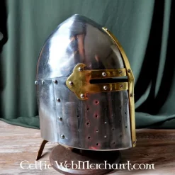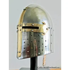 Denne store hjelm er baseret på franske originaler, der bæres fra det 12. århundrede og fremefter. Denne model blev senere brugt af riddere over hele Europa.