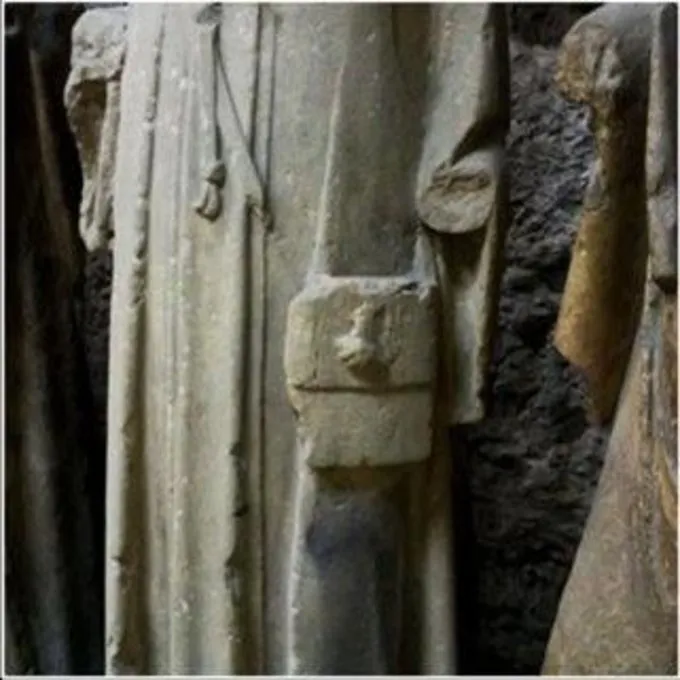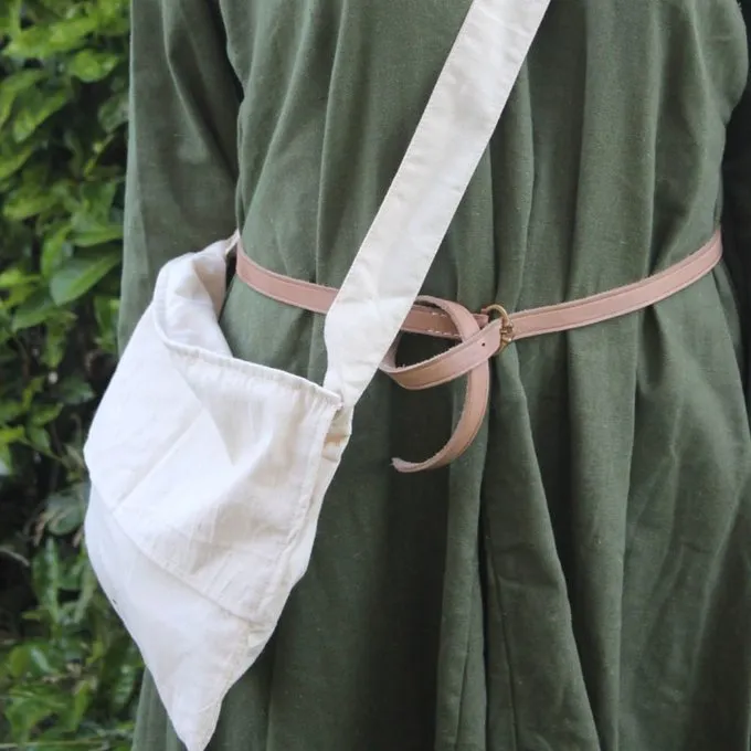 Denne taske er en kopi af en pilgrimspose, der er afbildet i katedralen i Valencia, Spanien. Den er lavet af lærred bomuld og det måler 28 x 31,5 cm.