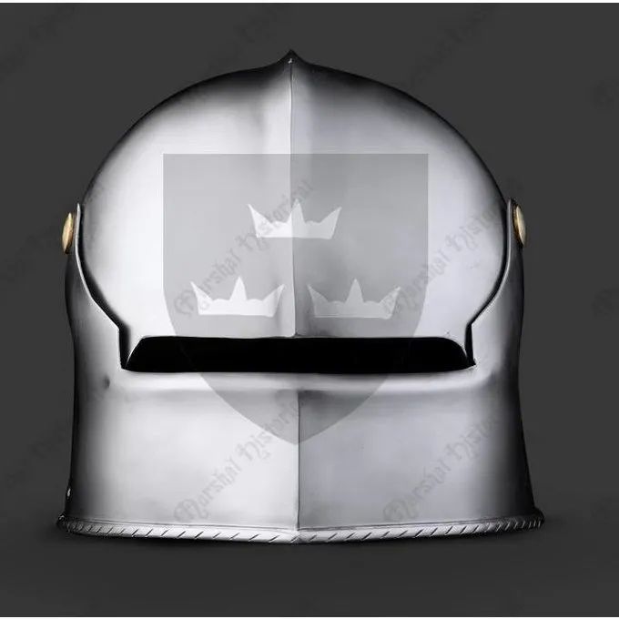 Denne sallet er en kopi af sydtyske og schweiziske originaler. Den er lavet i Augsburg-stilen og er typisk for sin korte nakkebeskyttelse. Visiret på denne praktiske sallet kan åbnes, og når det er lukket, kan det låses.