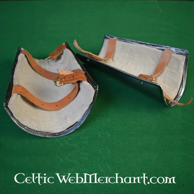 Solid armskinner for nyopførelse slag. Disse armskinner er lavet af 1,2 mm tyk stål, og de har en tekstil speeches og læder stropper til fastgørelse
