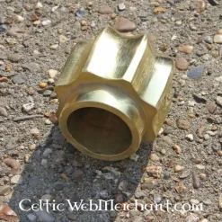 Dette er en kopi af en middelalderlig stridskølle hoved lavet af støbt messing. Det har en Tykkelse ca. 5? 6 mm, en højde på 5? 6 cm og den har et øje på ca.. 29 mm. Den vejer 0,4 kg.