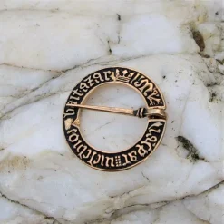 Denne Medieval ring broche er en kopi af en original lavet i Frankrig mellem 1350 og 1450. Den broche blev udgravet i England. Brochen indeholder med påskriften ‘ihesus nazaren [os] rex iudeoru [m] “(Jesus af Nazareth, jødernes konge). Brocher som denne blev båret i en stor sort i hele middelalderens Europa.