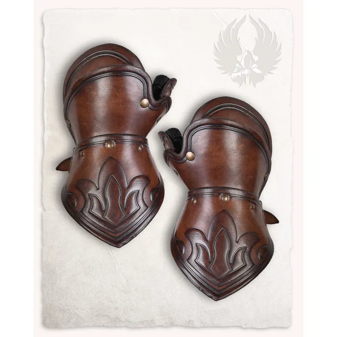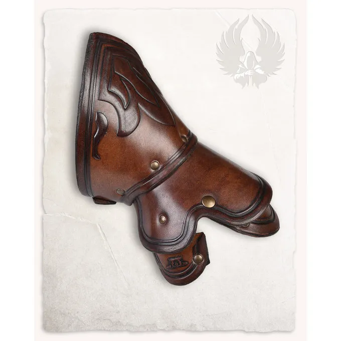 Disse gauntlets er egnede til reenactment, cosplay og larp. Produktet er lavet af læder af høj kvalitet. Gauntlets har en tommelfinger og en håndsløjfe. Handskerne har også en rem på håndleddet, så du kan justere pasformen. Handskerne er dekoreret med ornamenter, de gør en rigtig øjenfanger.