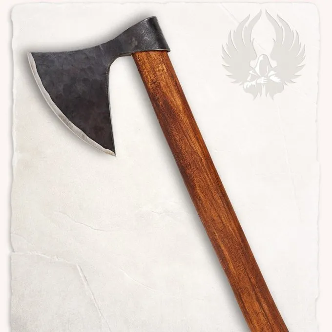 Denne smarte Mytholon økse er perfekt til reenactment eller LARP lejr! Denne økse er behageligt at holde i hånden, og du kan bruge den til at hugge brænde og alle mulige andre daglige gøremål. Øksen er skarp og lavet af hårdt træ og stål. Akser som denne blev anvendt i (tidligt) middelalderen. Øksen hoved har en antik og hånd-slået færdig, så det ser ekstra autentiske.