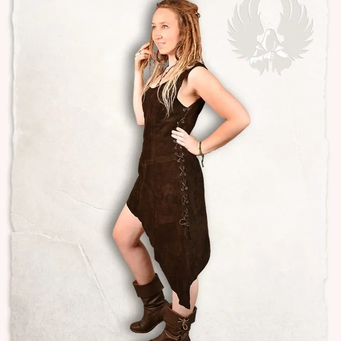 Denne kjole er perfekt til festivaler, cosplay og larp. Kjolen er lavet af ruskind læder. Kjolen har en snøring. Dette sikrer, at kjole kan tilpasse sig brugerens model. Kjole har et quirky design, der gør det legende, men hovedsagelig unikt.