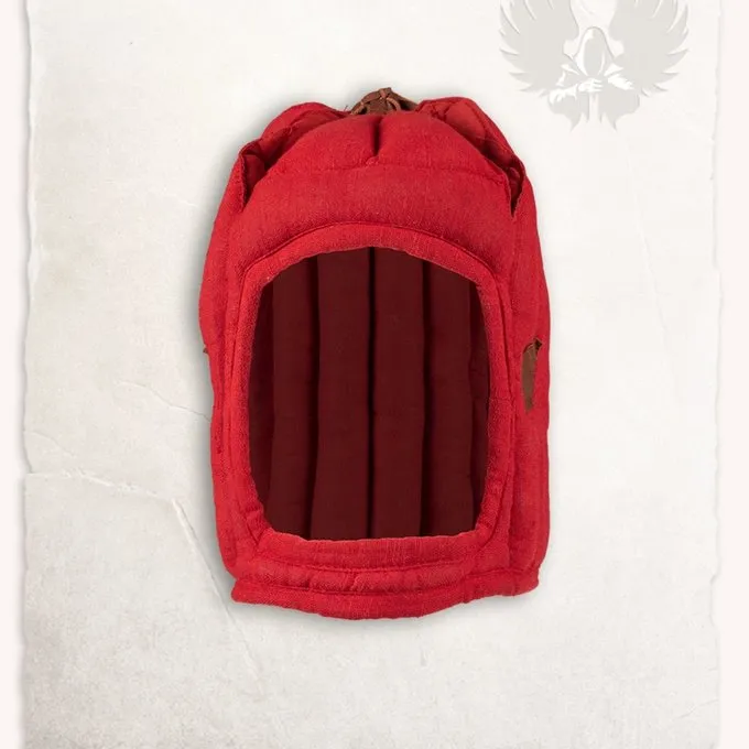 Denne tilkobling cap er baseret på et 15. århundrede original, der er nu en del af samlingen i Hofjagd und rüstkammer i Wien. Den bevæbning hætte beskytter hele hovedet og har læder forstærkninger i ørerne. Toppen er lukket med en læder blonder, så den kan justeres til størrelsen. Denne tilkobling hætte er lavet af uslebne vævet hør og bomuld blanding med en skum polstring. Denne tilkobling kasket kan bæres under bascinet, stor hjelm, spand hjelm, armet og under nogle typer af sallets. Denne farve er en limited edition!