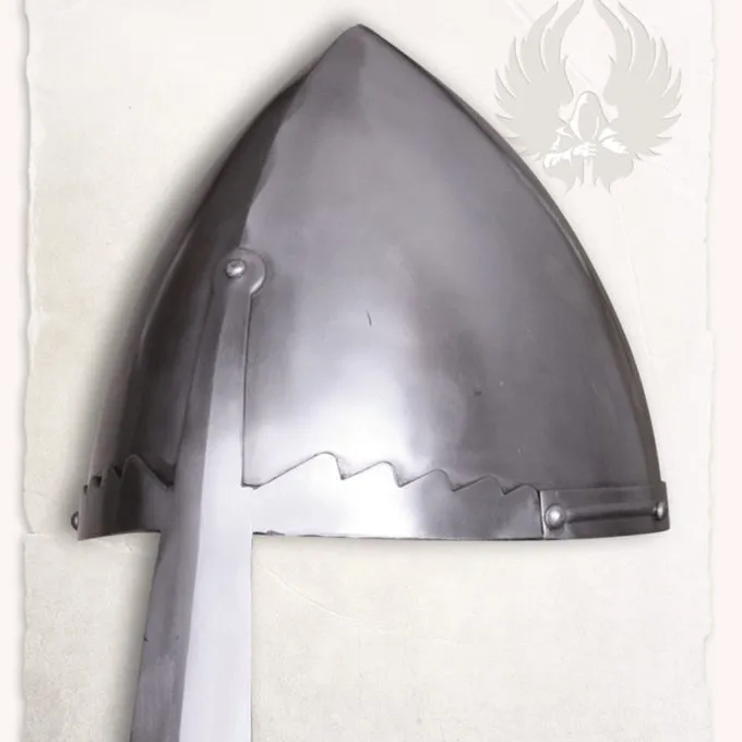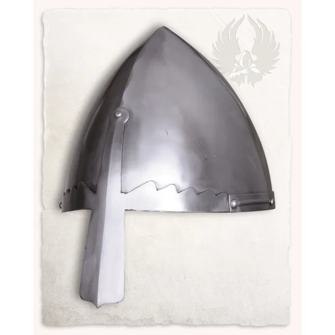 Dette Norman nasal hjelm er baseret på originaler, der blev båret hele Europa mellem den 10. og 14. århundrede. Medieval hjelme som denne er afbildet på Bayeux-tapetet og riddere bar dem under korstogene. Denne type hjelm var meget populært, fordi det tilbudt god synsfelt, men den lange nasale stykke også beskyttet næse og ansigt.
