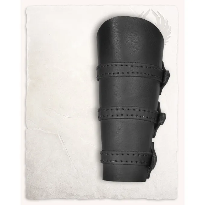 Disse Vambraces er egnede til reenactment, cosplay og larp. Disse Vambraces er lavet af øvre læder. De har et ret simpelt design, men det gør dem ideelle til mange kostumer. De er meget komfortable og kan lukkes med tre bælte spænder.