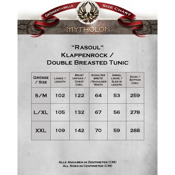 Denne kaftan er egnet til viking reenactment, cosplay og LARP. Den Kaftan er fremstillet af uld og bomuld. Ulden holder dig varm og beskytter dig mod regn, i kombination med den luftige bomuld. Den kaftan er dekoreret med traditionelle kors broderi. Dette giver kaftan en ædel fremtoning.