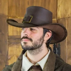 Hatte fra den spanske producent Rawblade er lavet af læder af høj kvalitet. Traditionelt håndværk og standarder af højeste kvalitet garanterer en lang levetid og dimensionel stabilitet. En læderhat er en loyal ledsager i dårligt vejr og et vigtigt tilbehør til mange kostumer. Denne hat er inspireret af Anti-Hero Solomon Kane: Pirate, Assassin og Pilgrim. Denne hat er perfekt til rogues eller andre karakterer med kriminel baggrund. En smuk hat til at afslutte din festival, larp, genindførelse eller cosplay -kostume!