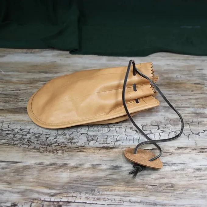 Detaljer: Materiale: læder; / Størrelse: 26 x 18 cm; / Med strop til lukning og bære; / Farve: lysebrun; / Baseret på historisk original: ja
