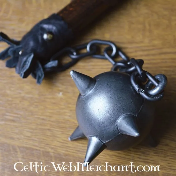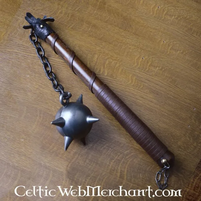 Denne stridsplejl har et håndtag med en længde på 32 cm. Dens kugle er lavet af træ og har metal point.