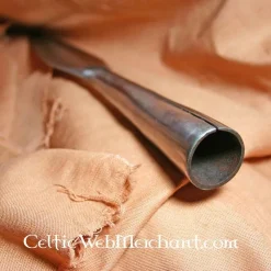 Produkt detaljer: Længde: 28,5 cm / Hovedstørrelse: 15 cm / Ringdiameter: 3 cm / Vægt: 250 g / Materiale: DA45 fjederstål hårdhed 48-50 HRC. / Kant: halvskarpt / skaft medfølger: nej / based on da historisk original: ja /