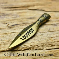 Dette vedhæng er lavet af messing og måler 5,5 x 1,3 cm.