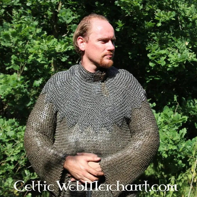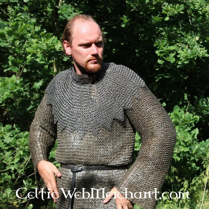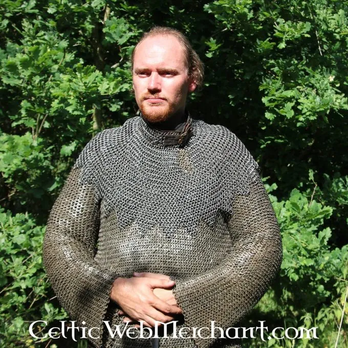 Aventails som denne blev båret over hele Europa i løbet af det 15. og 16. århundrede. I det 16. århundrede var det uhyre populær blandt den tyske Landsknecht og den skotske og irske Galloglass. … Denne type brynjekrave kaldes også Bishop “s Mantle Det har læderremme med replika ranges Den nedre side af kraven er fremstillet af messing chainmail denne brynjekrave er lavet af gathered ringe 1: 4