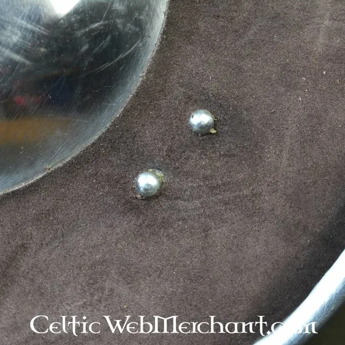 Denne runde bukkel er dækket med læder for ekstra beskyttelse. Bukkel som dette blev primært brugt i renæssancen, selvom den type var meget ældre. Dette våben er perfekt kombineret med en én-hånds sværd eller en bue.