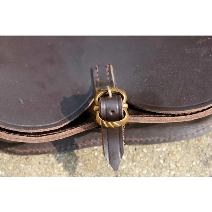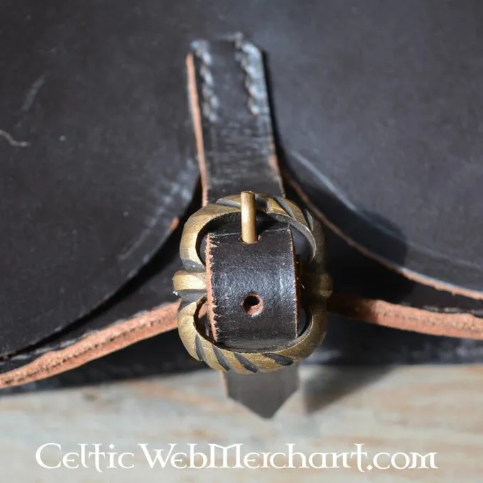 Denne taske er lavet efter flere originaler, der blev båret mellem 2. halvdel af det 14. århundrede og 1. halvdel af det 15. århundrede. Den er lavet af 3 mm tykt robust læder og er forsynet med et smukt men diskret spænde. Foranstaltningerne taske 25 x 11 x 4 cm