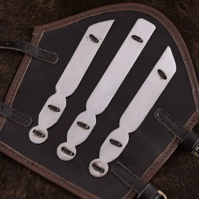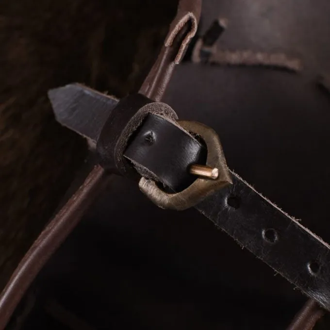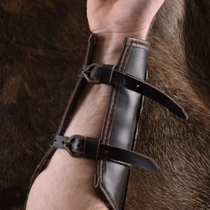 Materiale: vegetabilsk garvet læder, stål, messing / / En størrelse passer alle / / Farve: brun / / Tykkelse: 5 mm / / Leveret per piece / / Beskyttelse: håndled til albue / / Baseret på en historisk original