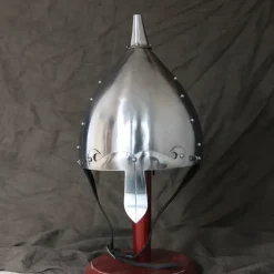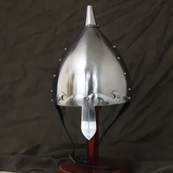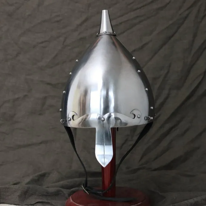 Denne hjelm er en kopi af et slavisk Hjelm with næseskinne fra det 8. årh. E.Kr. Hjelme som denne blev båret af de slaviske folk, det Rusvik og af Varangian Guards. Denne praktiske Hjelm with næseskinne kan være dekoreret med en padderok. Det er lavet af 2 mm tyk stål og er helt kampklare. Hjelmen har en justerbar læder speeches.