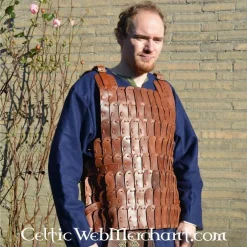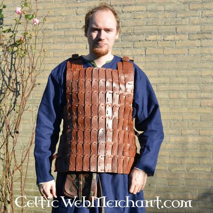 Dette er en rekonstruktion af en tidlig middelalder læder lamellar rustning. Ca. 220 lamellars blev forbundet med hånden for at gøre denne rustning. Armeringen er egnet til en brystmål på 105 cm. Med en rem den kan justeres i størrelse. Ekstra lamellars er tilgængelige til at udvide eller forlænge rustning.