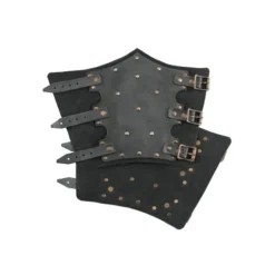 Dette par armbeskyttere i plade er lavet af stærk vegetabilsk garvet læder og blødt ruskind. Rustikke nitter forbinde de to lag af læder. Overfladen og kanter tykt læder er poleret og har en lys farve finish, som giver læderet sin karakteristiske vintage look. De armbeskyttere i plade kan lukkes med tre spænder og kan justeres i størrelse.