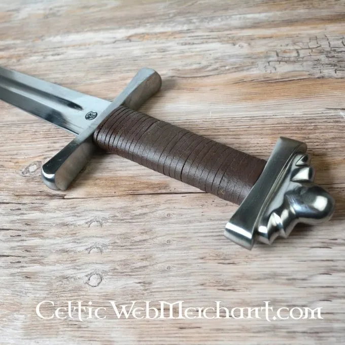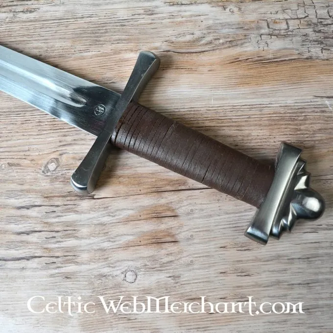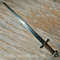 Detaljer / Materiale: DA45 fjederstål hårdhed 48-50 HRC / Samlet længde: 93,5 cm / Klingelængde: 75,5 cm / Blade bredde: 4,2 cm / Knap: skruet / Konstruktion: fuld tang / Stump 2,5 mm ( kampklare) / Vægt: 1100 gram / Baseret på historisk original /